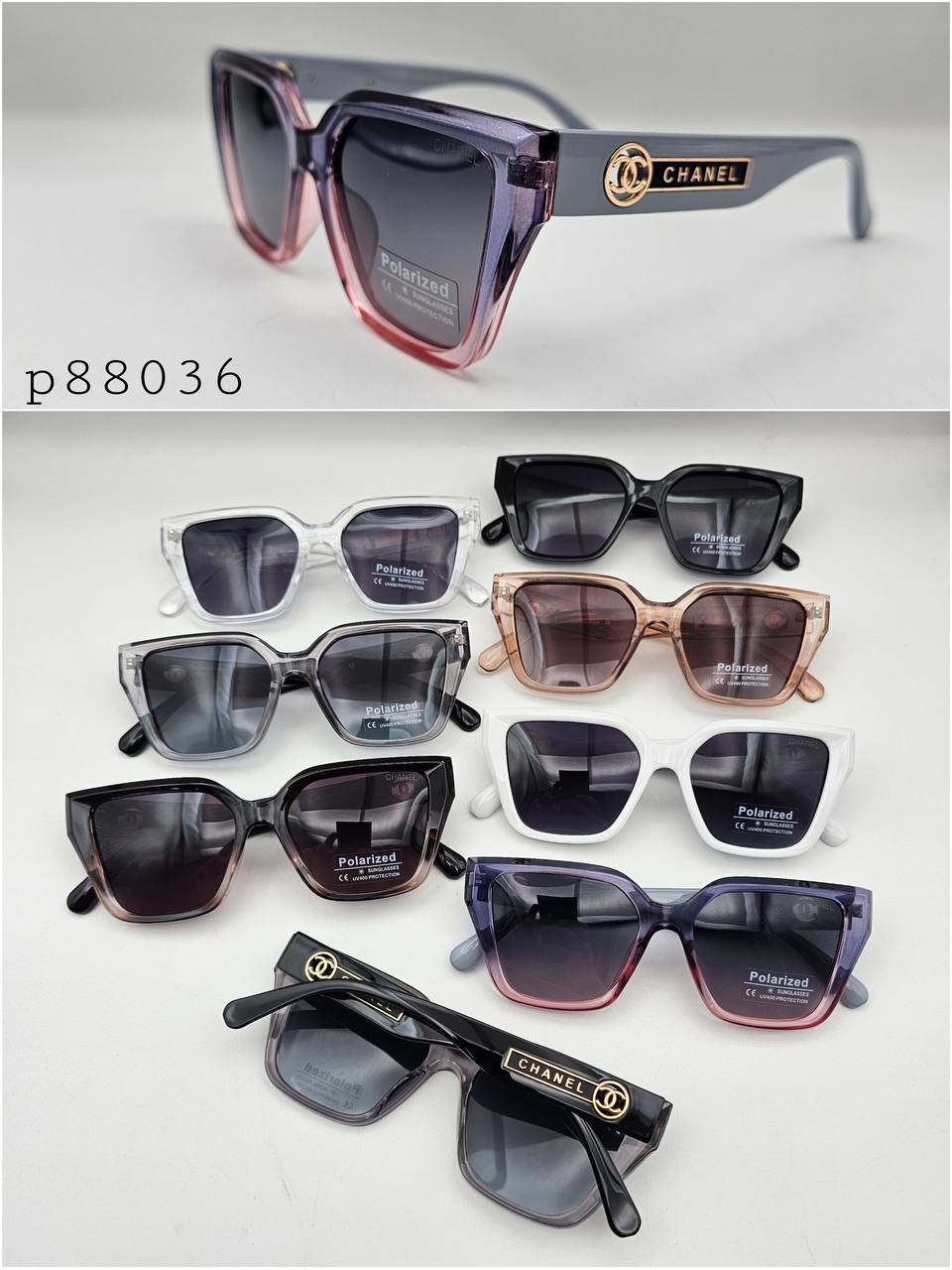 عینک افتابی زنانه پلاریزه شنل chanel کد 88036 +هدیه پک کامل