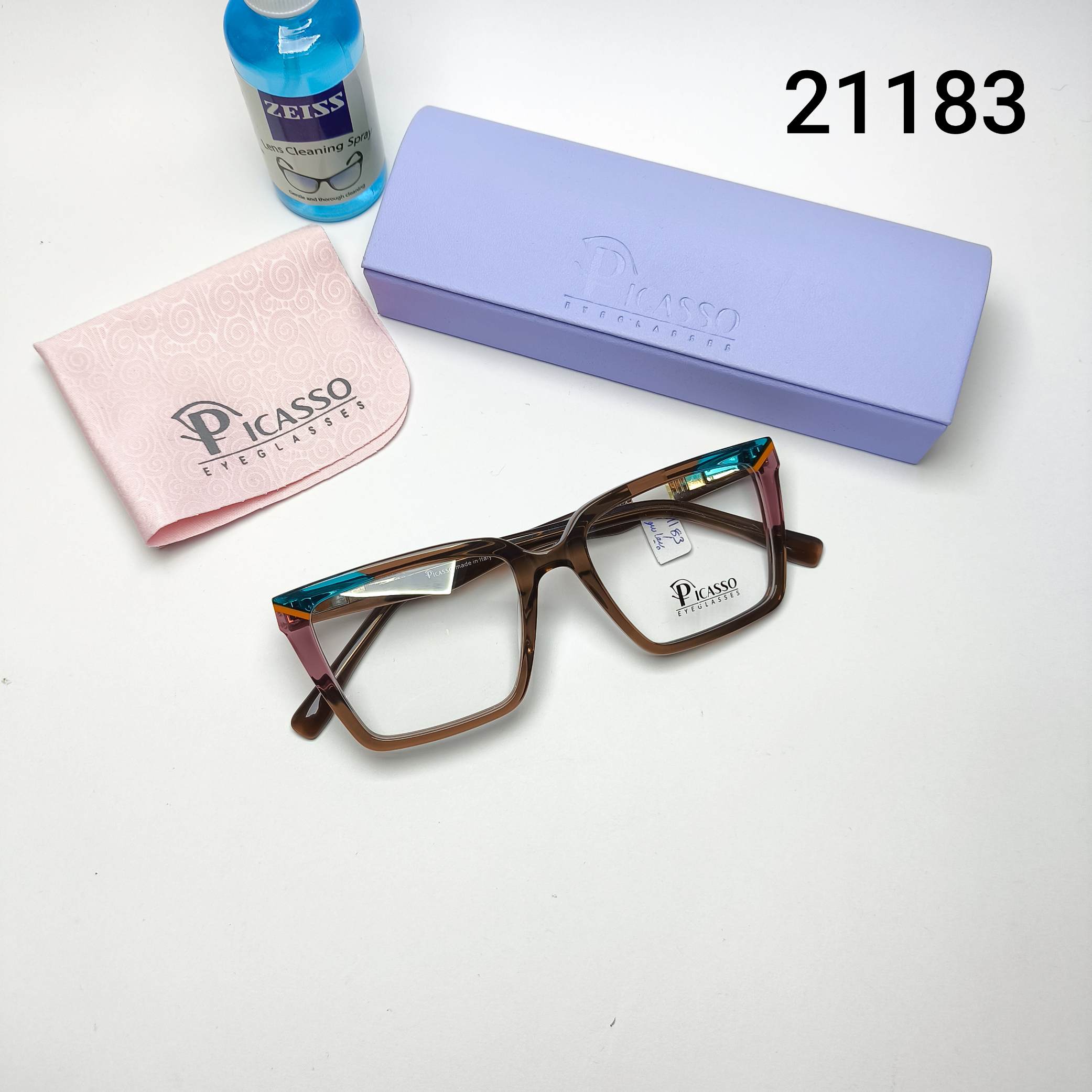 عینک طبی زنانه استات دسته سیم پیکاسو Picasso به همراه جلد و دستمال مدل 2080