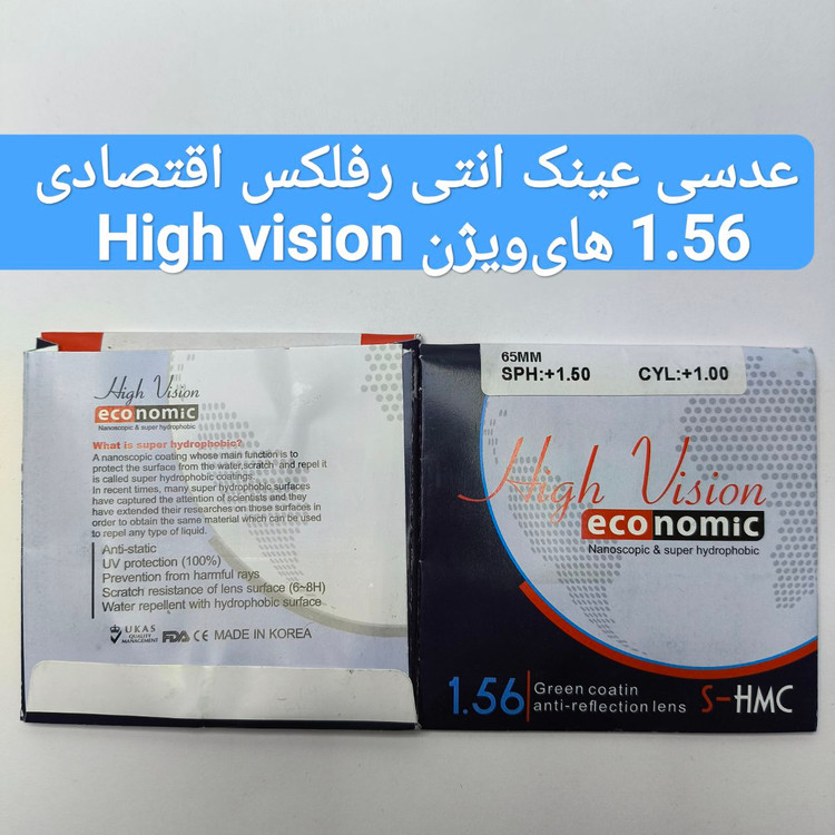 عدسی عینک انتی رفلکس اقتصادی 1.56 هایویژن High vision