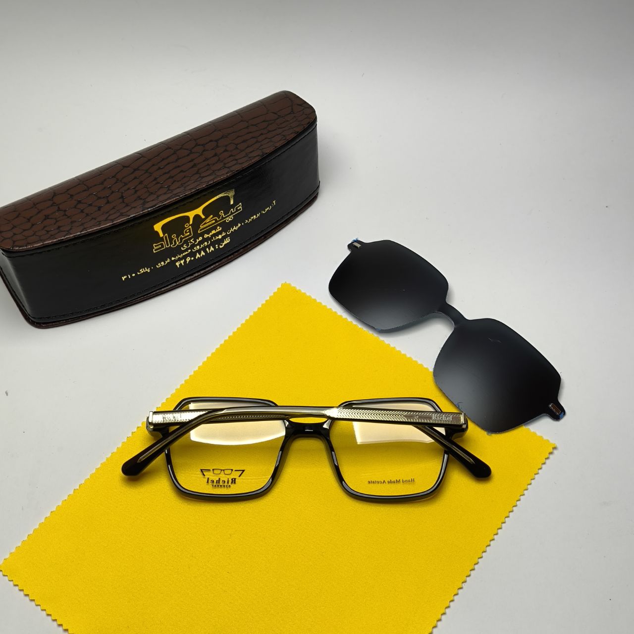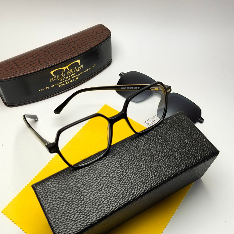 عینک طبی کاور دار ریچل Richel مدل 9245 اورجینال دسته سیم کائوچو پلاریزه اسیتیت به همراه پک هدیه