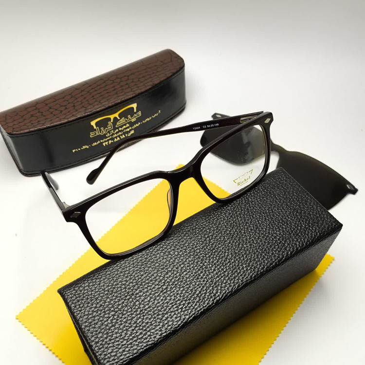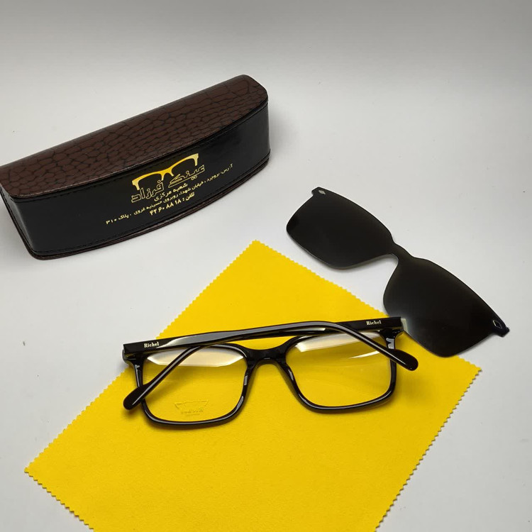 عینک طبی کاور دار ریچل Richel مدل 2444 اورجینال دسته سیم کائوچو پلاریزه اسیتیت به همراه پک هدیه