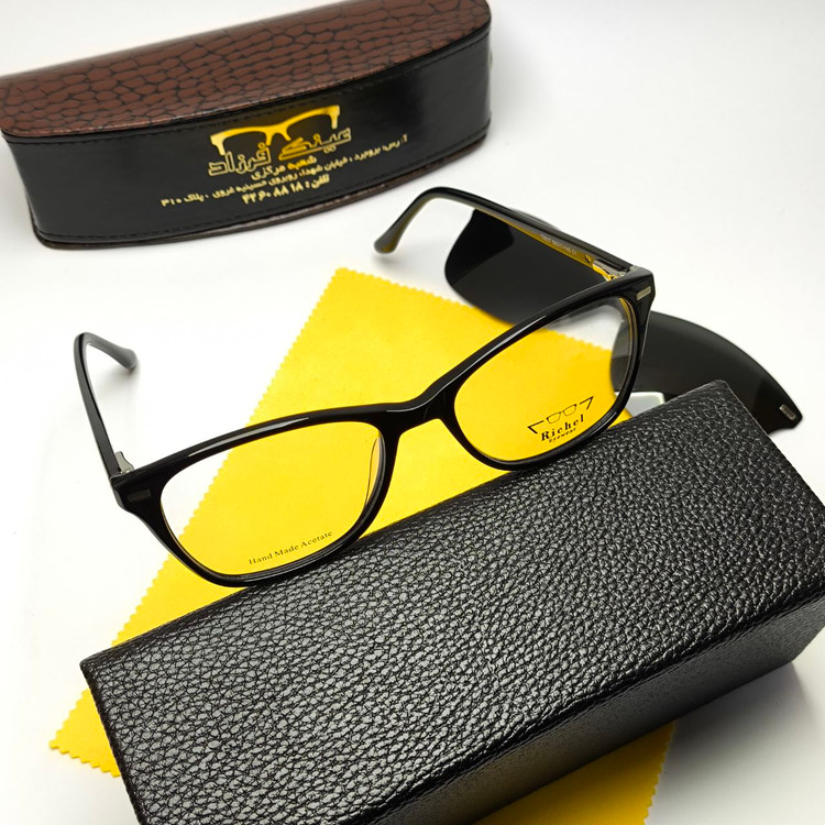 عینک طبی کاور دار ریچل Richel مدل 9217 اورجینال دسته سیم کائوچو اسیتیت به همراه پک هدیه