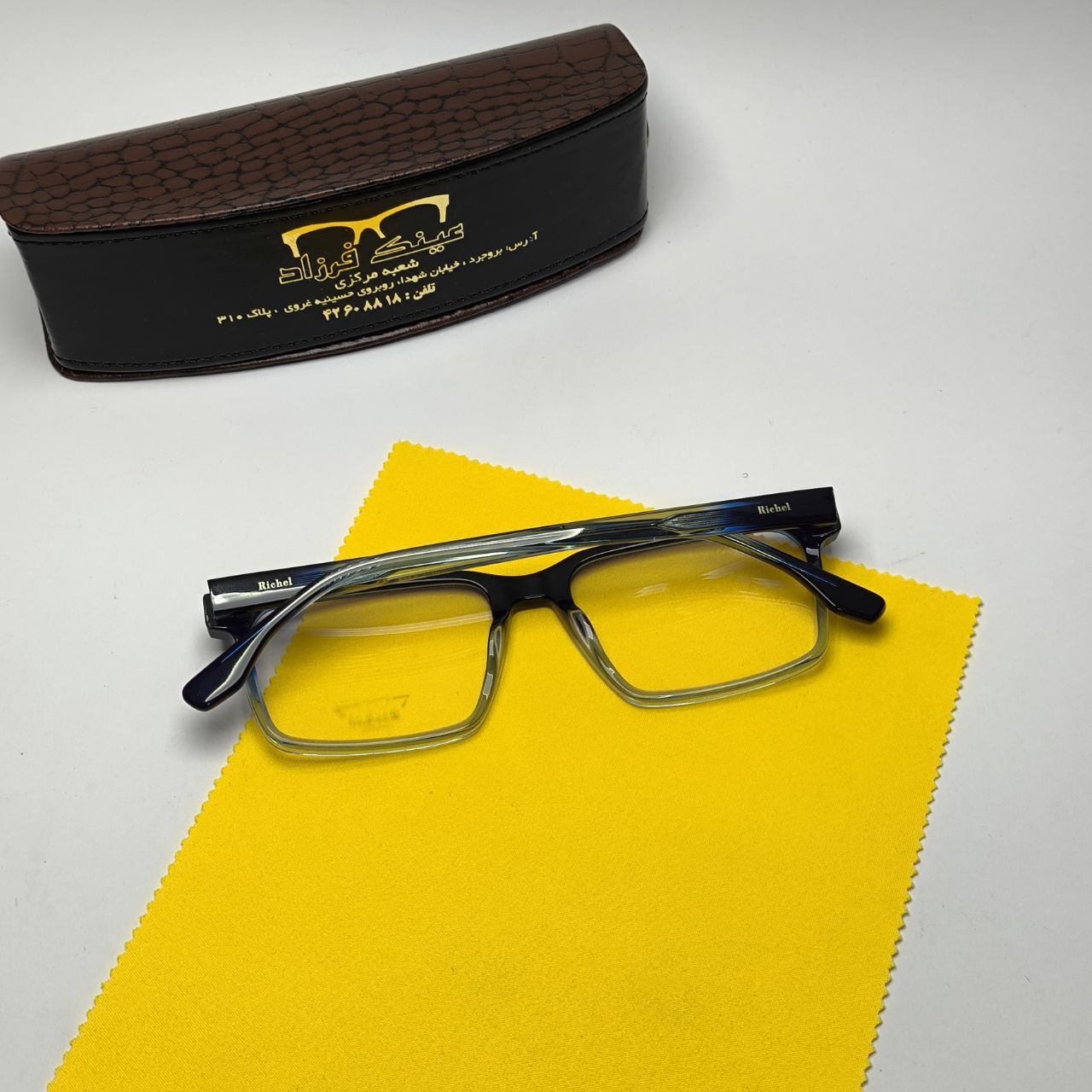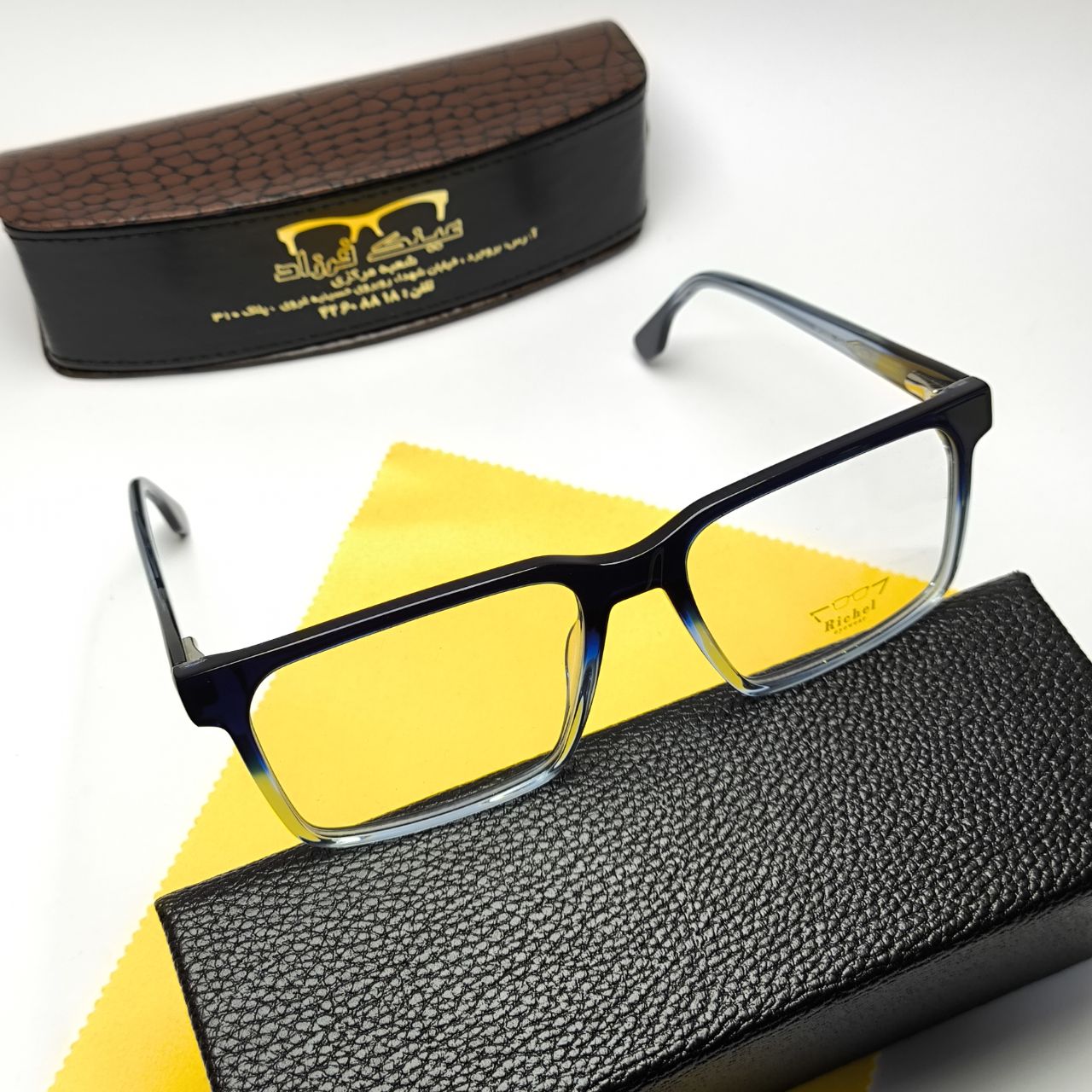 عینک طبی ریچل Richel مدل 22090 اورجینال دسته سیم کائوچو اسیتیت به همراه پک لوازم جانبی