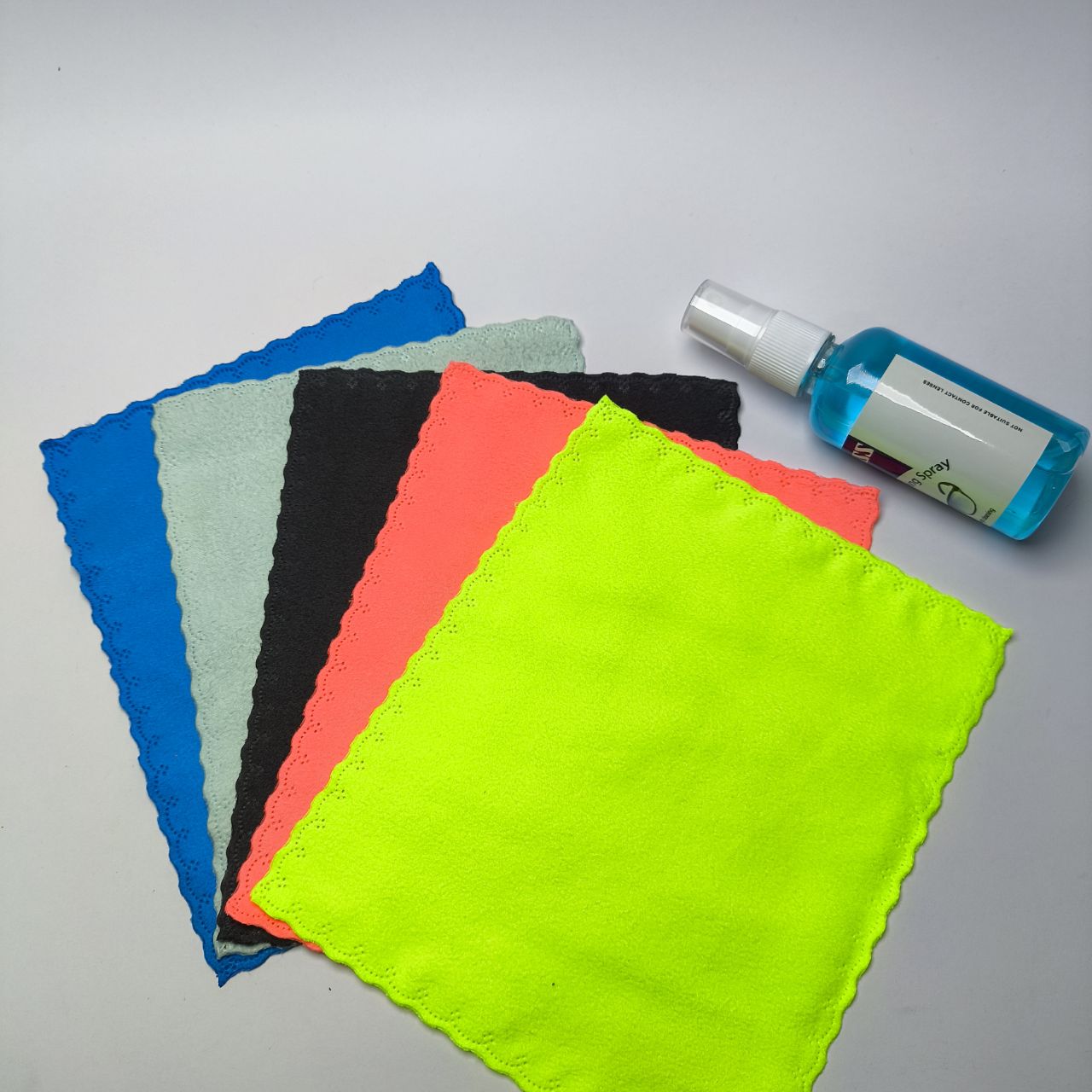 پک دستمال پنبهای و اسپری مخصوص پاک کردن عینک طبی و عینک آفتابی