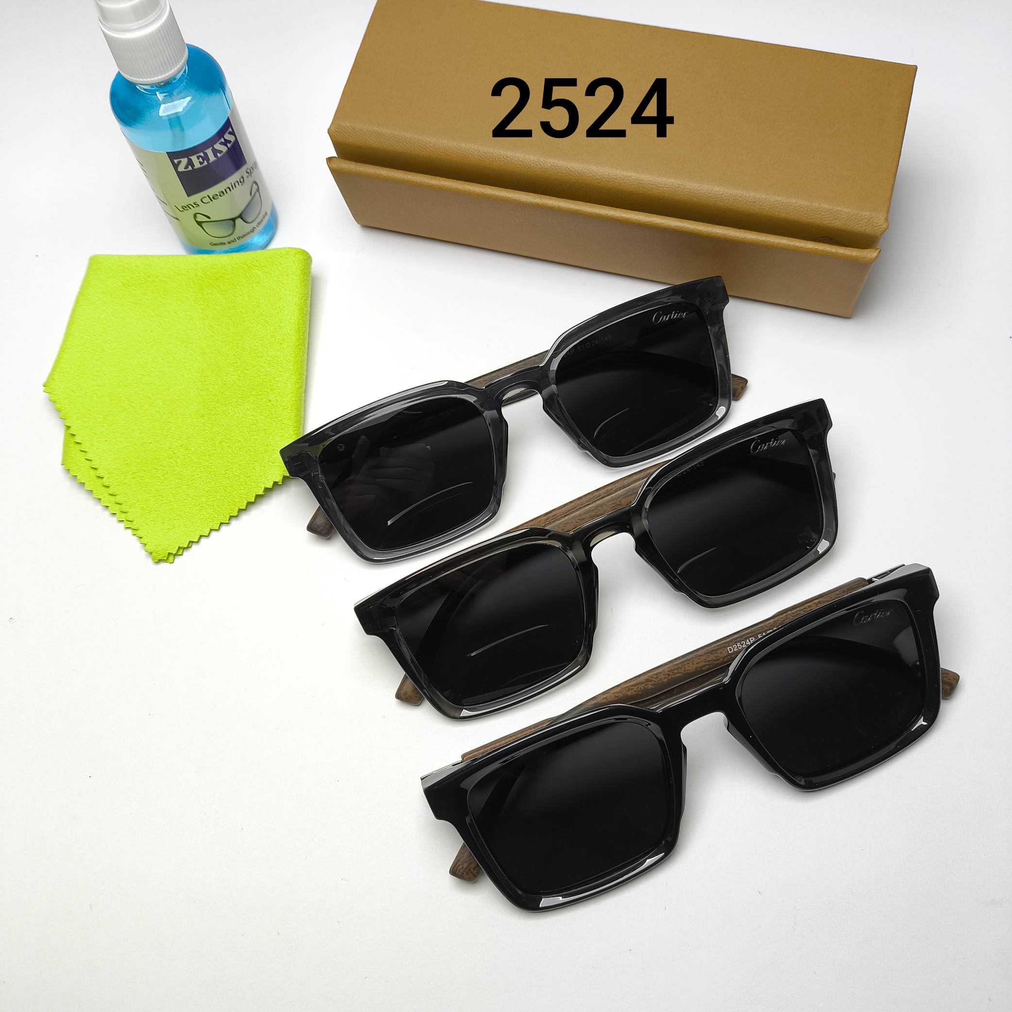 عینک آفتابی cartier کارتیر طرح دسته چوب مدل 2525 + پک هدیه لوازم جانبی