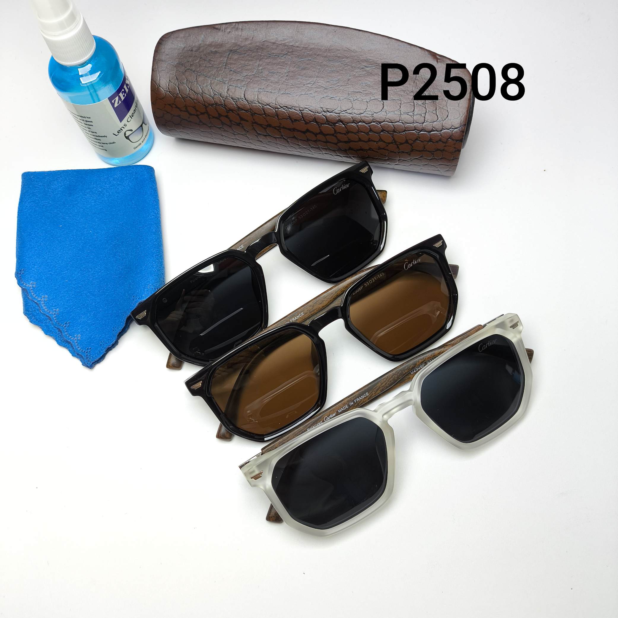 عینک آفتابی مردانه پلاریزه کائوچو کارتیر Cartier مدل 2543 به همراه پک لوازم جانبی هدیه